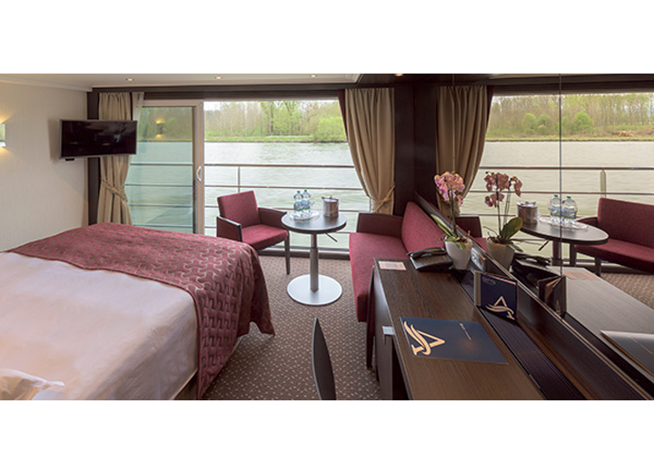 Located on the Indigo Deck (Forward & AFT) Suite features include: Comfort Collection BedsEgyptian super-combed cotton linensSoft & firm pillowsChoice of bed configurationBedside tables with reading lampsL'Occitane bath productsEasy under-bed luggage storageAlarm clockBathrobes & slippersComplimentary bottled waterIndividual climate controlLarge mirror in bathroomUSB PortsFull shower with glass doorVanity and lighted makeup mirrorLuxurious mattress toppersEuropean-style duvetsExtra blanketsNightly turn-down serviceHairdryerSpacious 3-door closets with shelves for ample storageFlatscreen satellite TV with English-speaking channels & over 100 free movie optionsDirect-dial telephoneWell-stocked minibarIn-room safeElegant, contemporary designComplimentary Wi-FiTwo windowsWriting desk and chair